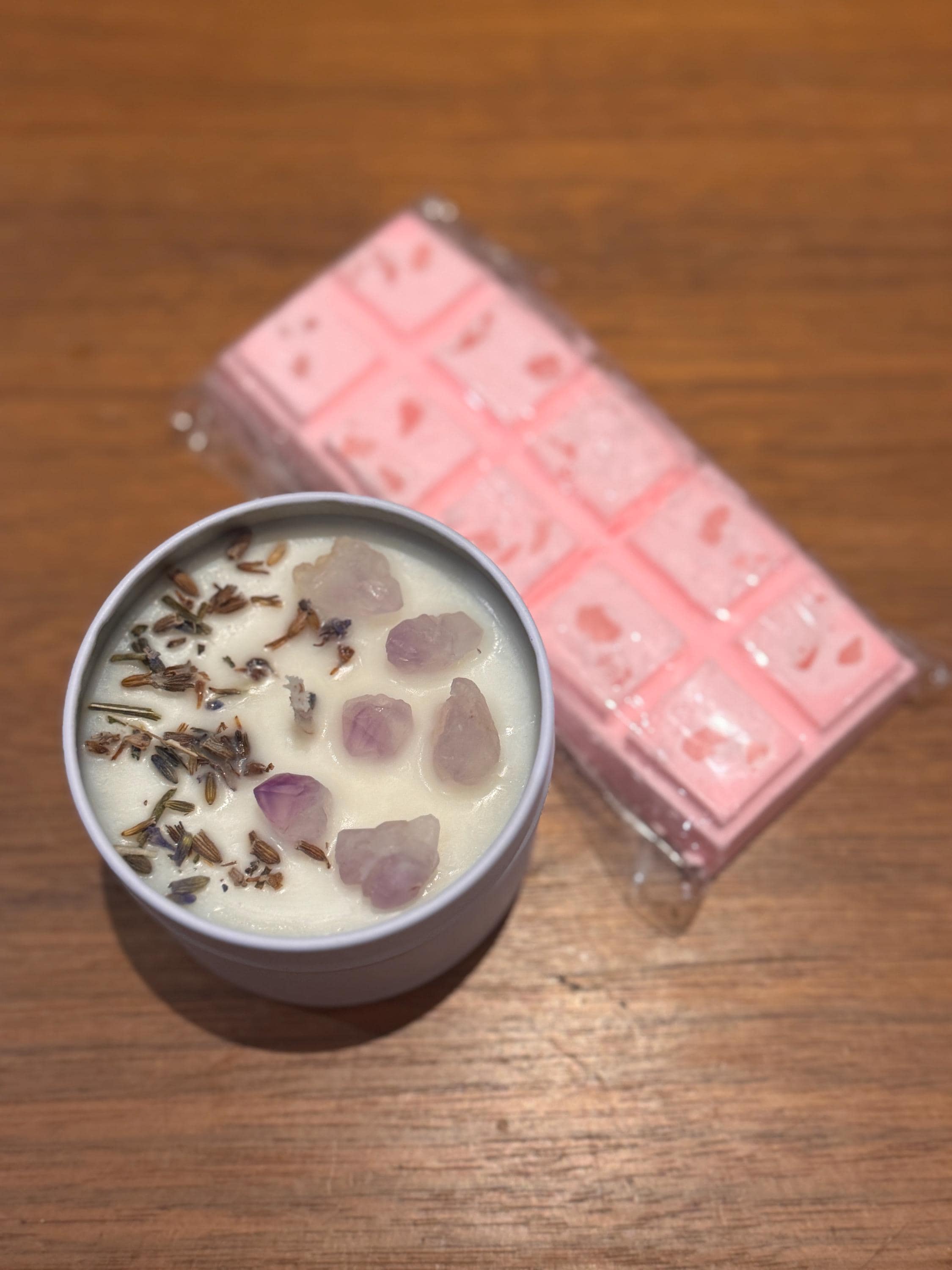 Treat yourself to this gorgeous Amethyst candle complete with Amethyst crystals set on top of the candle.