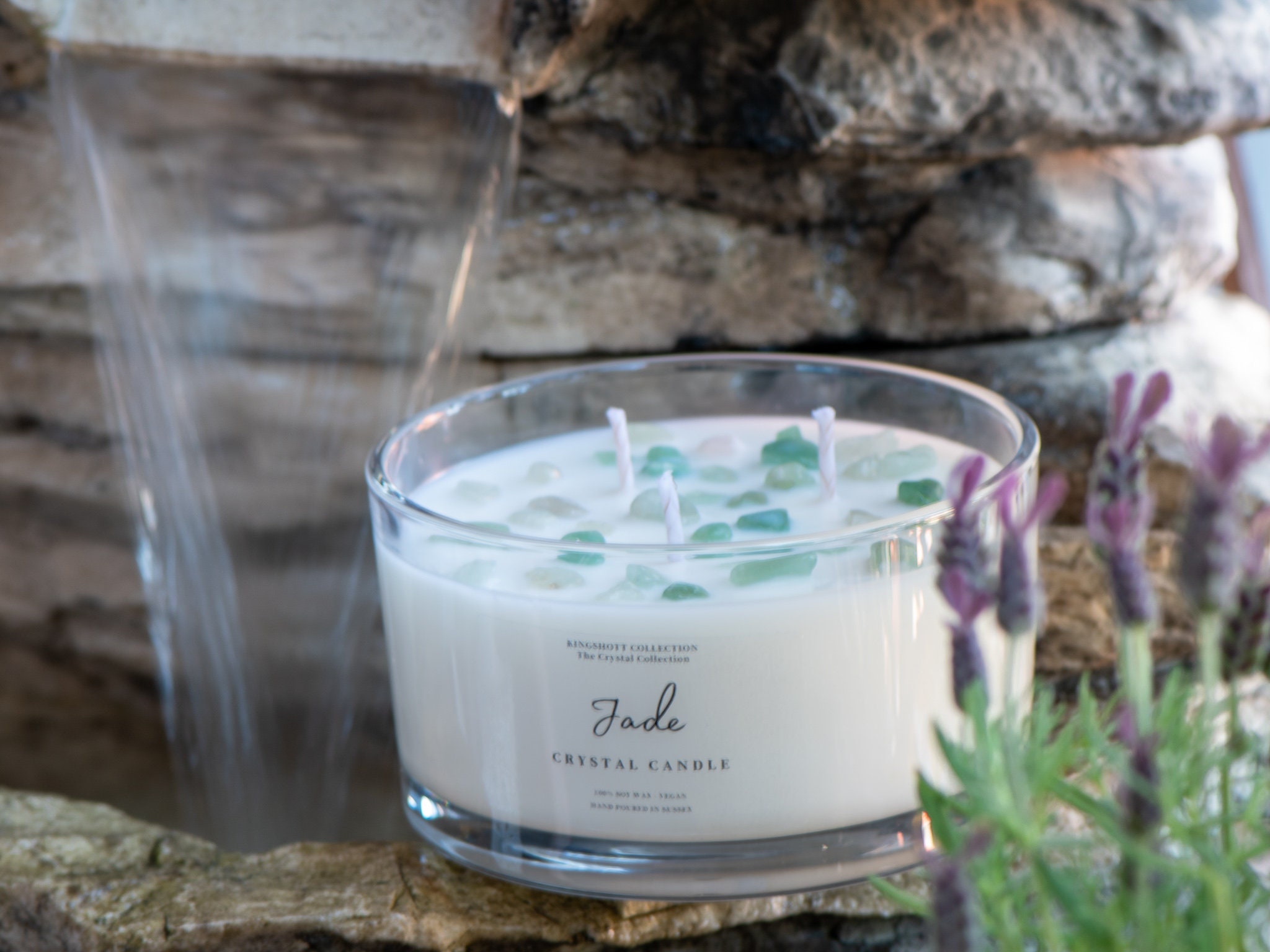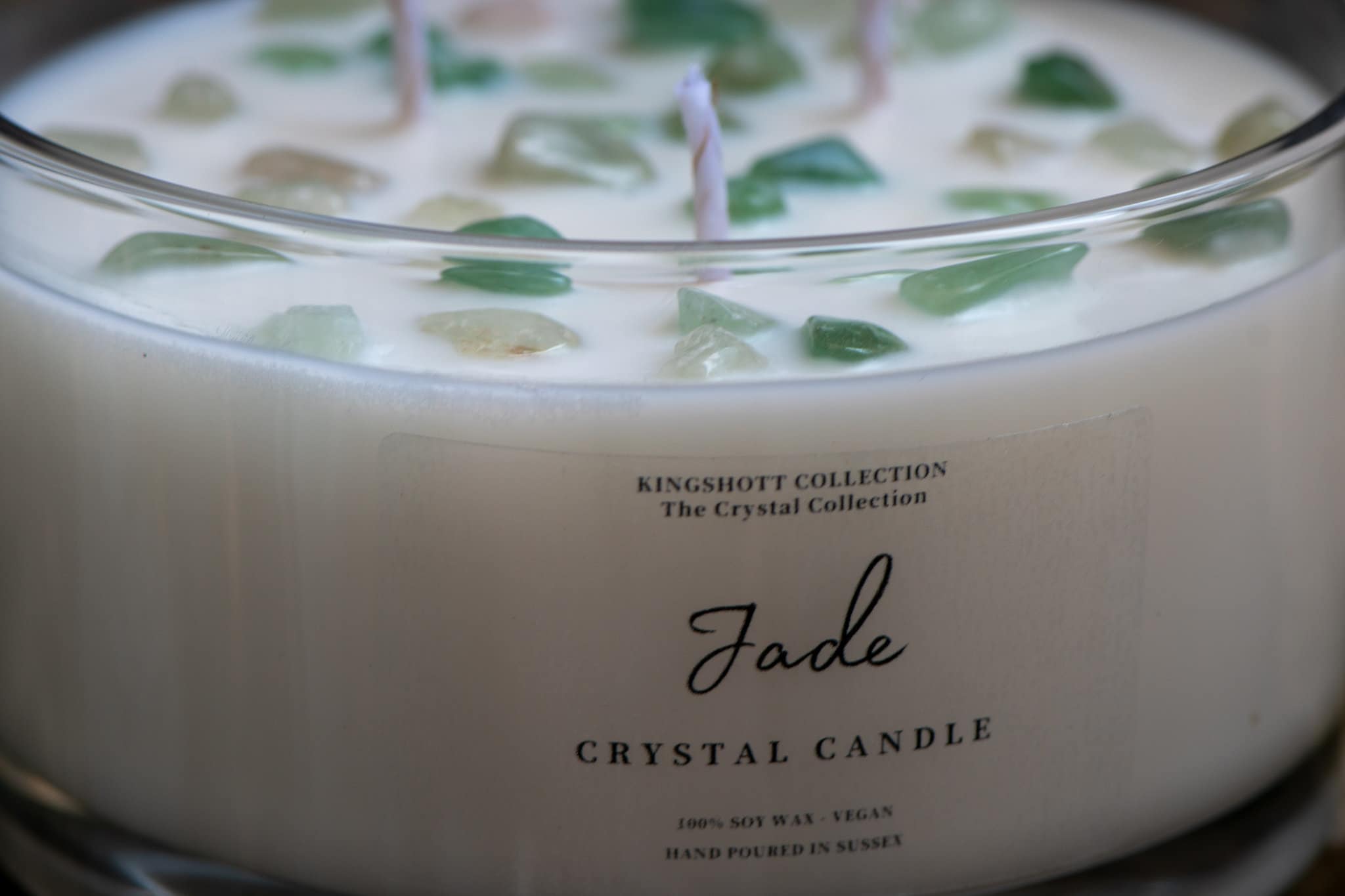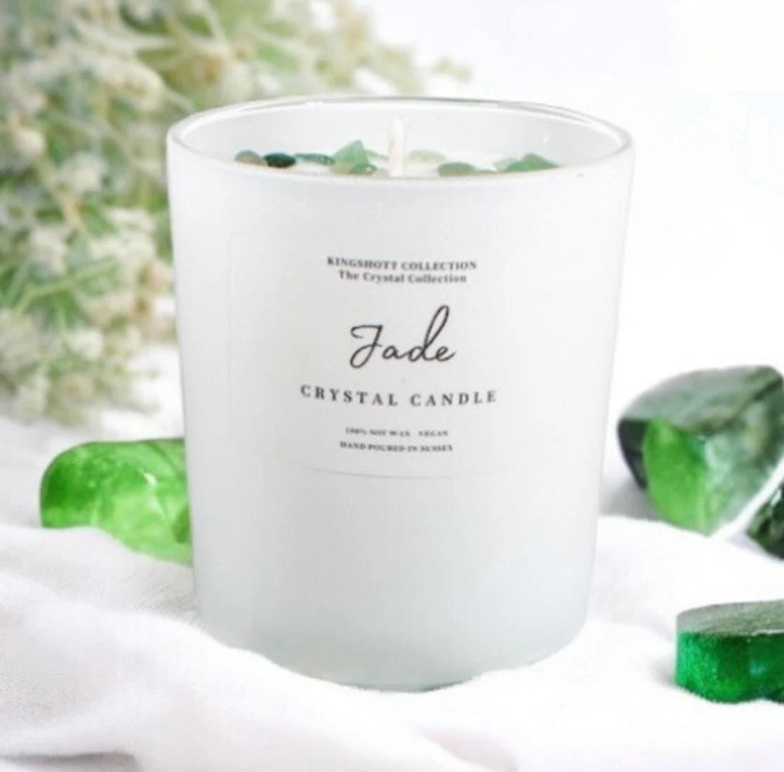 Treat yourself to this gorgeous Jade candle complete with Jade crystals set on top of the candle.
