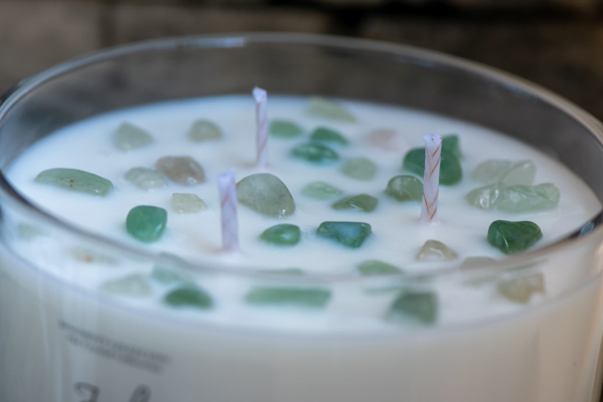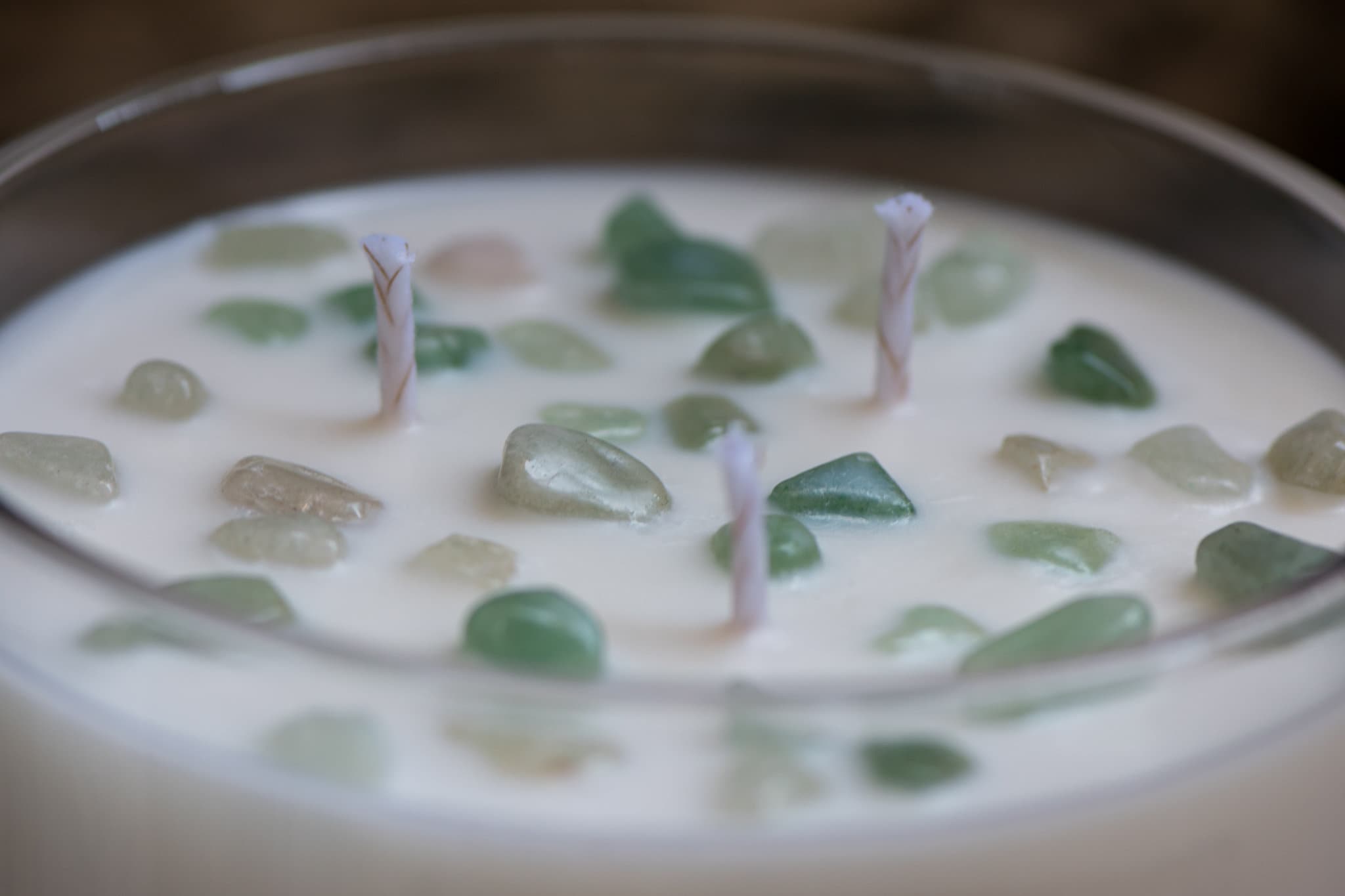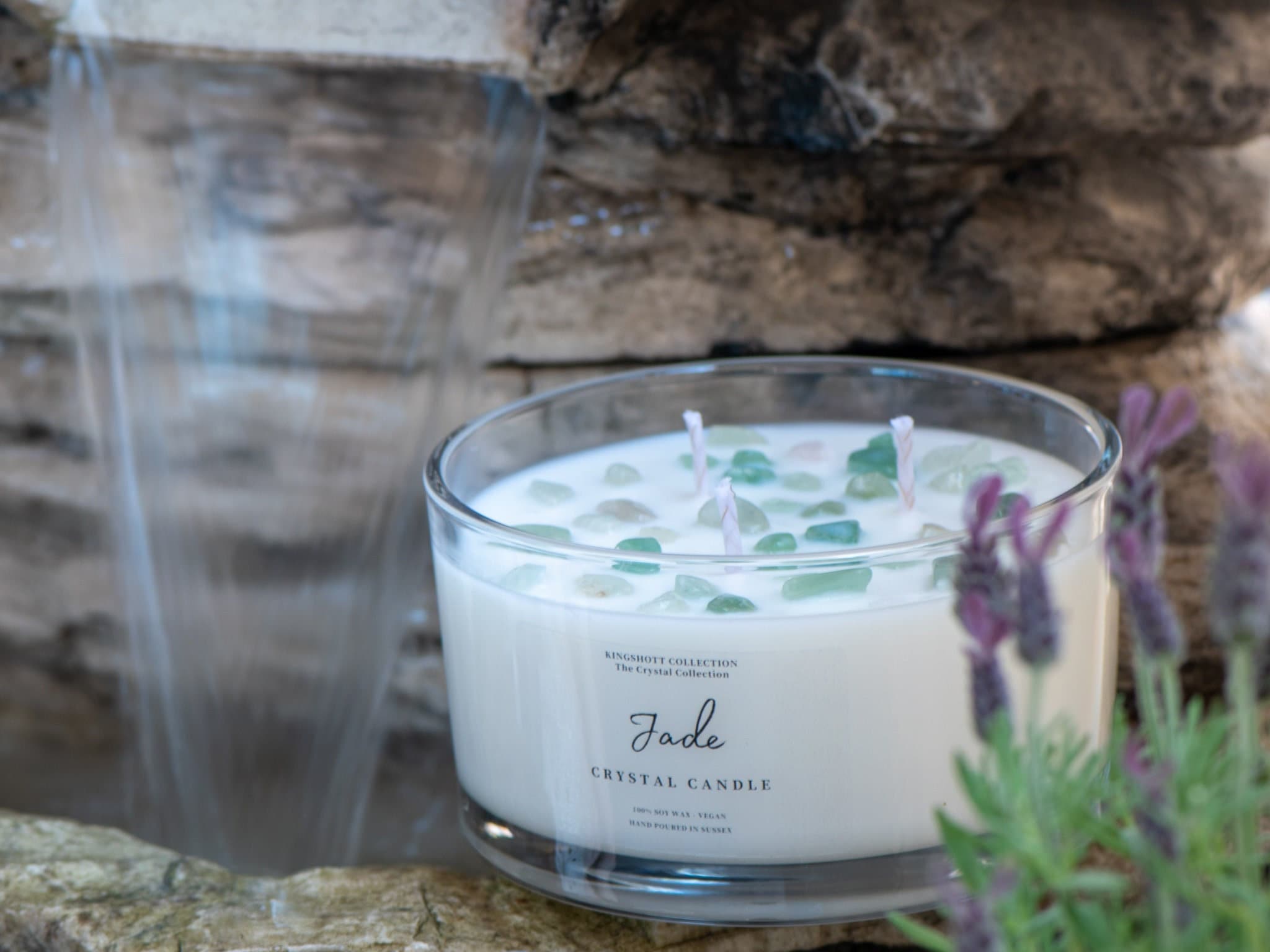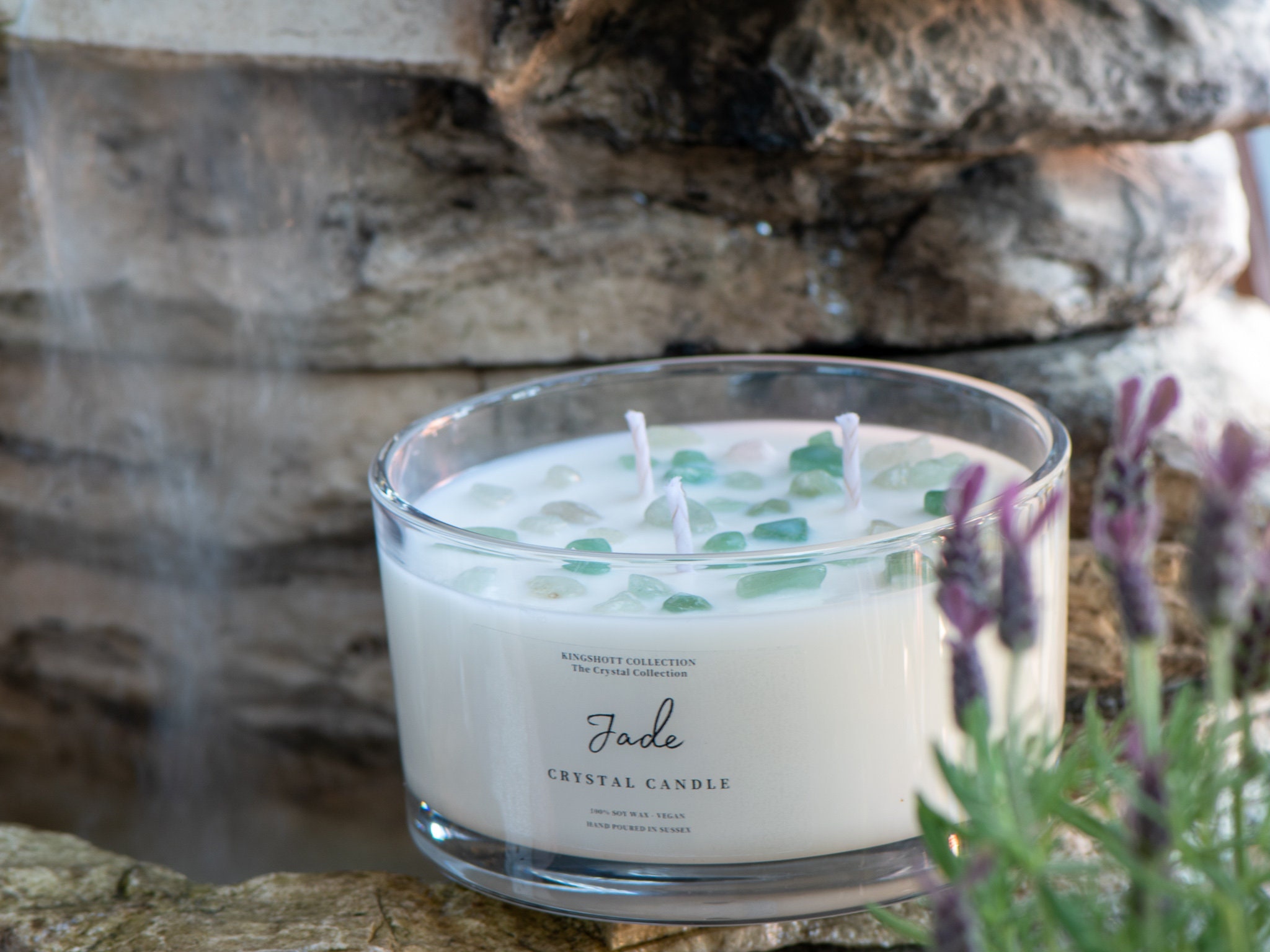 Treat yourself to this gorgeous Jade candle complete with Jade crystals set on top of the candle.