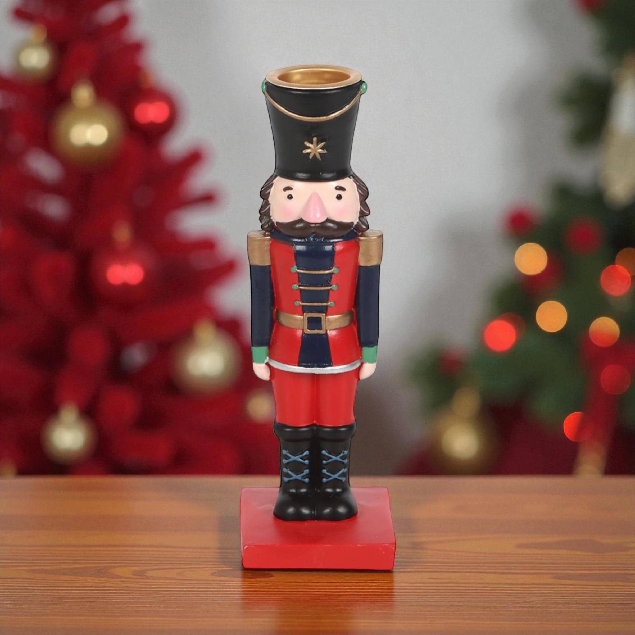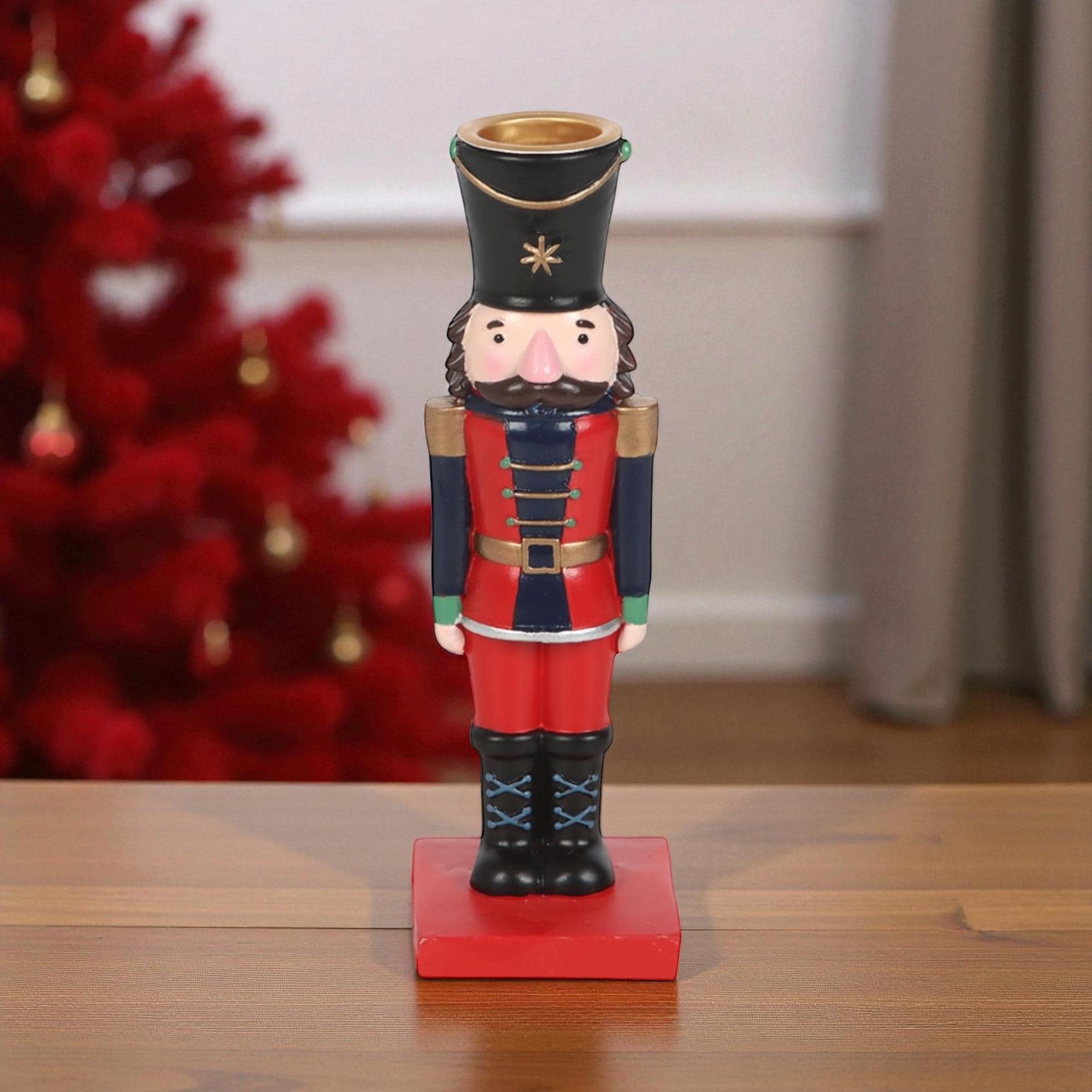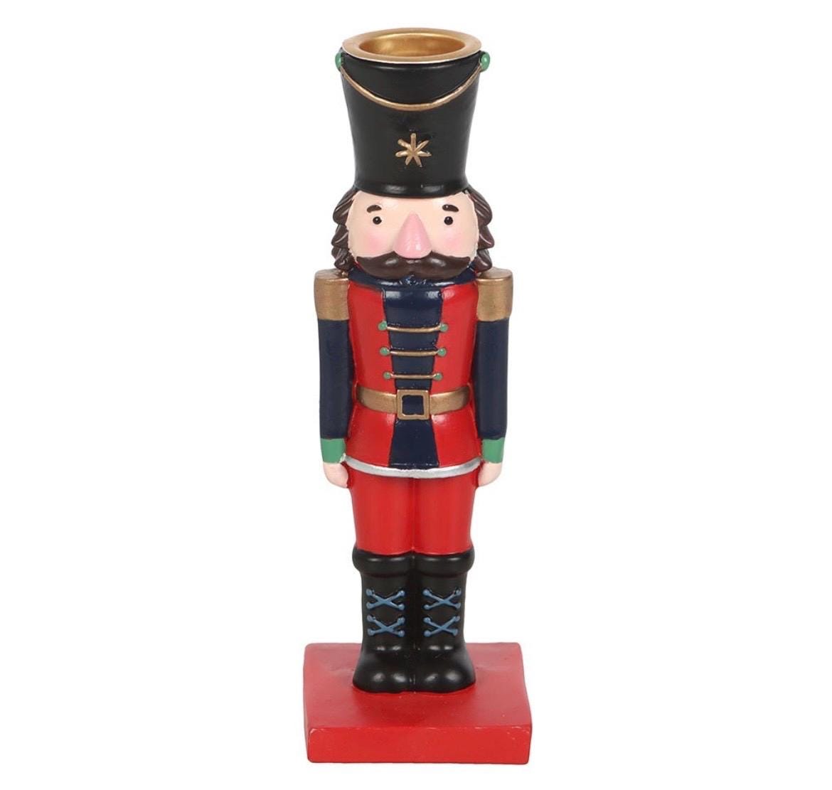 Bring a touch of traditional Christmas charm to the home with this nutcracker-shaped taper candle holder. Whether placed on a dining table, mantelpiece, or as part of a display, place a taper candle in the hat of the nutcracker to make a striking seasonal statement piece.