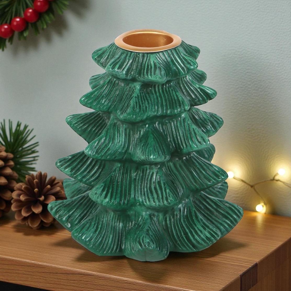 This green fir tree resin candle holder includes a matching taper candle, making it a stunning festive centrepiece for adding a warm, seasonal glow to any space. A great addition to Christmas tablescapes or as a thoughtful gift for winter lovers.